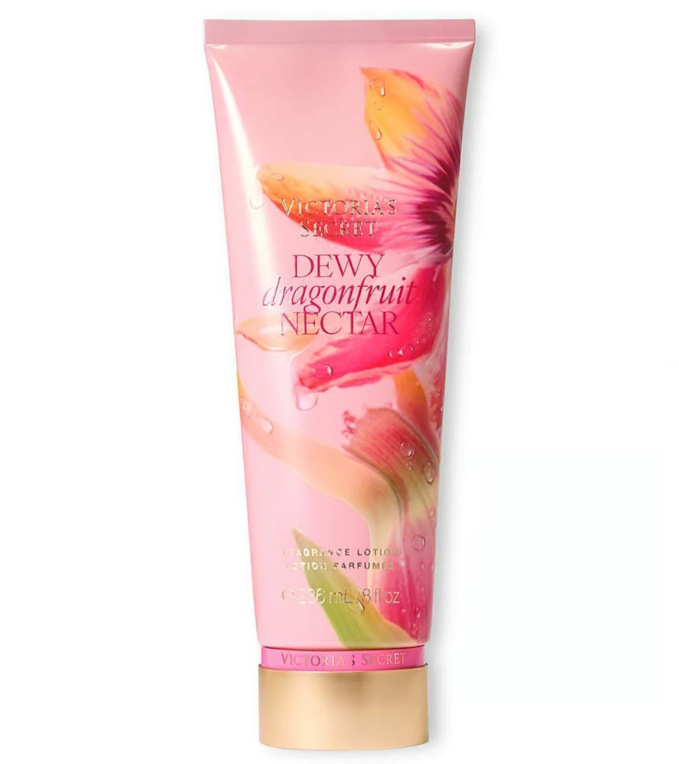 - O hidratante Victoria’s Secret Dewy Dragonfruit Nectar é uma loção corporal frutada e fresca, lançada em 2025, com notas principais de pitaya rosa e manga tailandesa, que oferecem hidratação, maciez e um brilho suave à pele, com uma fragrância tropical vibrante e refrescante, parte da coleção Dew-Kissed. Sua fórmula é leve, de rápida absorção e geralmente vegana, ideal para um aroma duradouro e energizante.